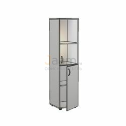 Офисный шкаф узкий со стеклом пр./бронза ЛФ219